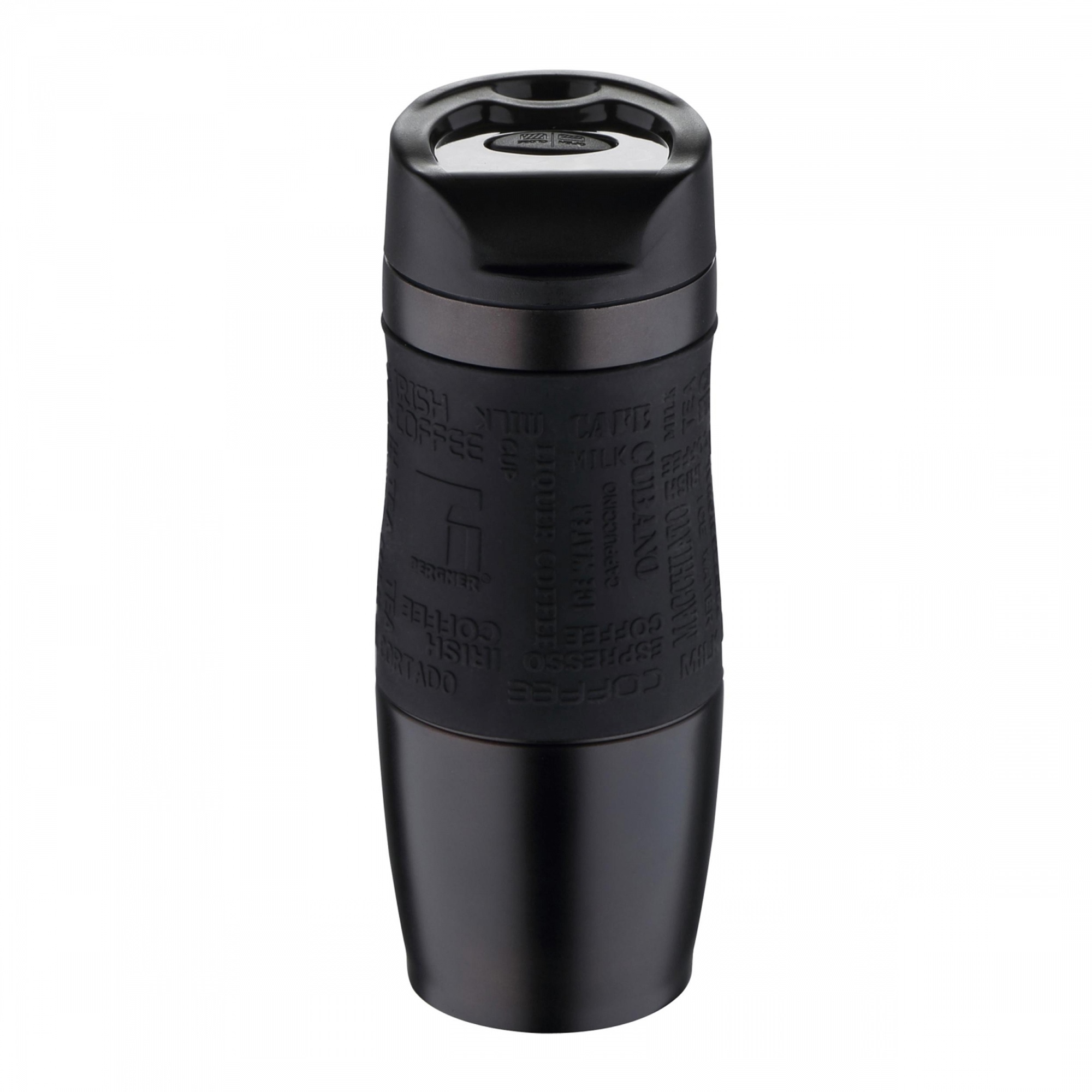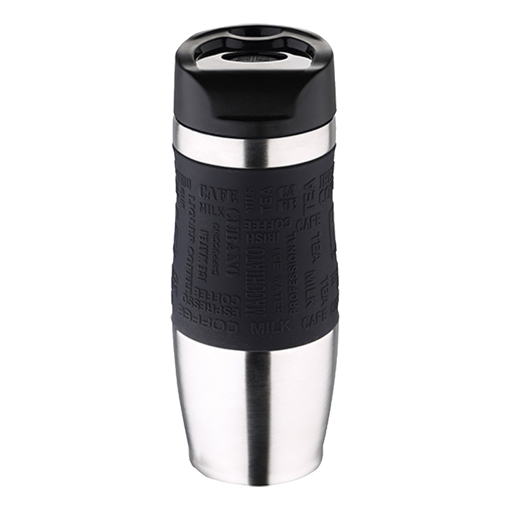 Taza de Viaje 460ml en Acero inoxidable y silicona Negro LOVERS Bergner – Q4666