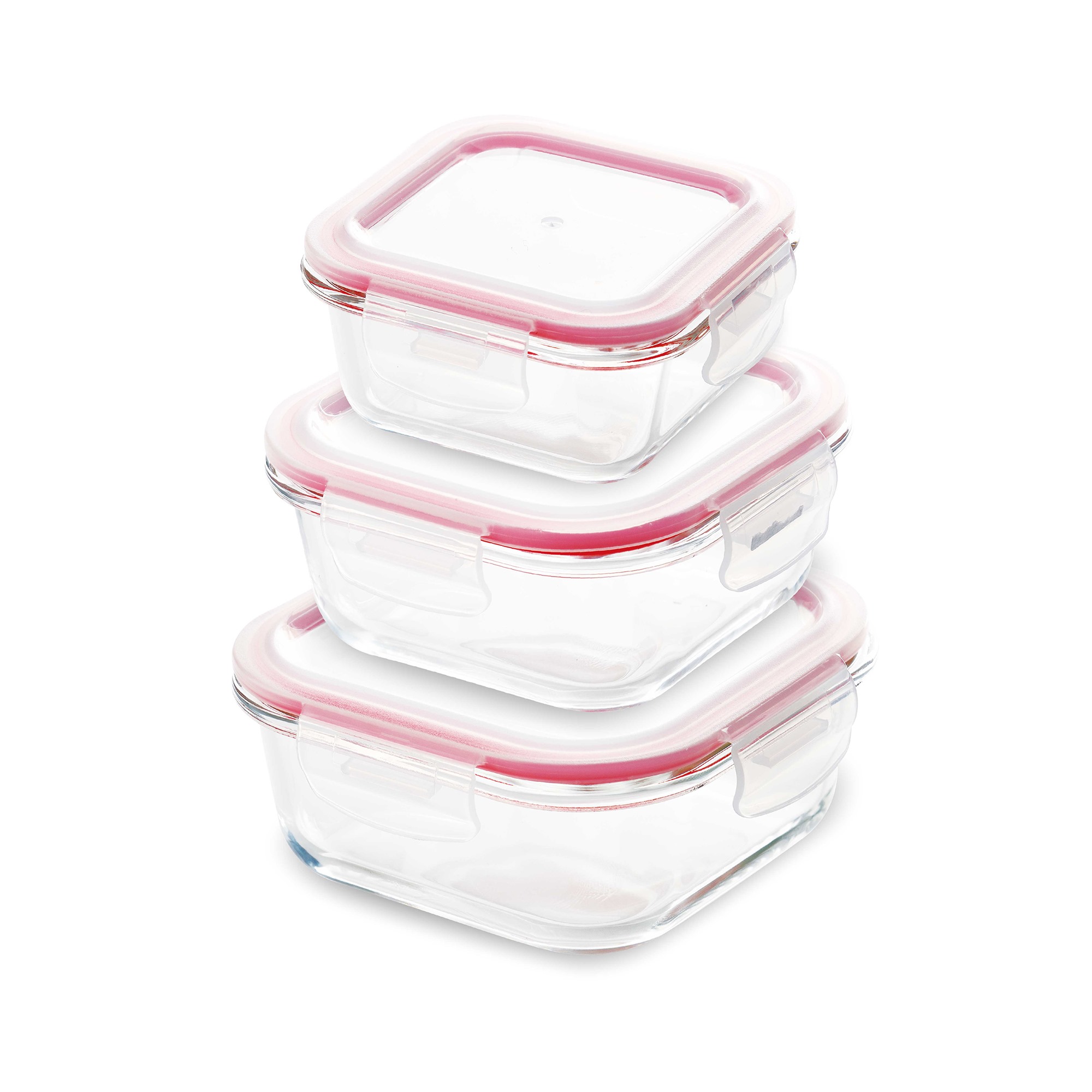 Set 3 fiambreras hermeticas cuadradas Bergner Walking anywhere de borosilicato en color rojo – Q4052