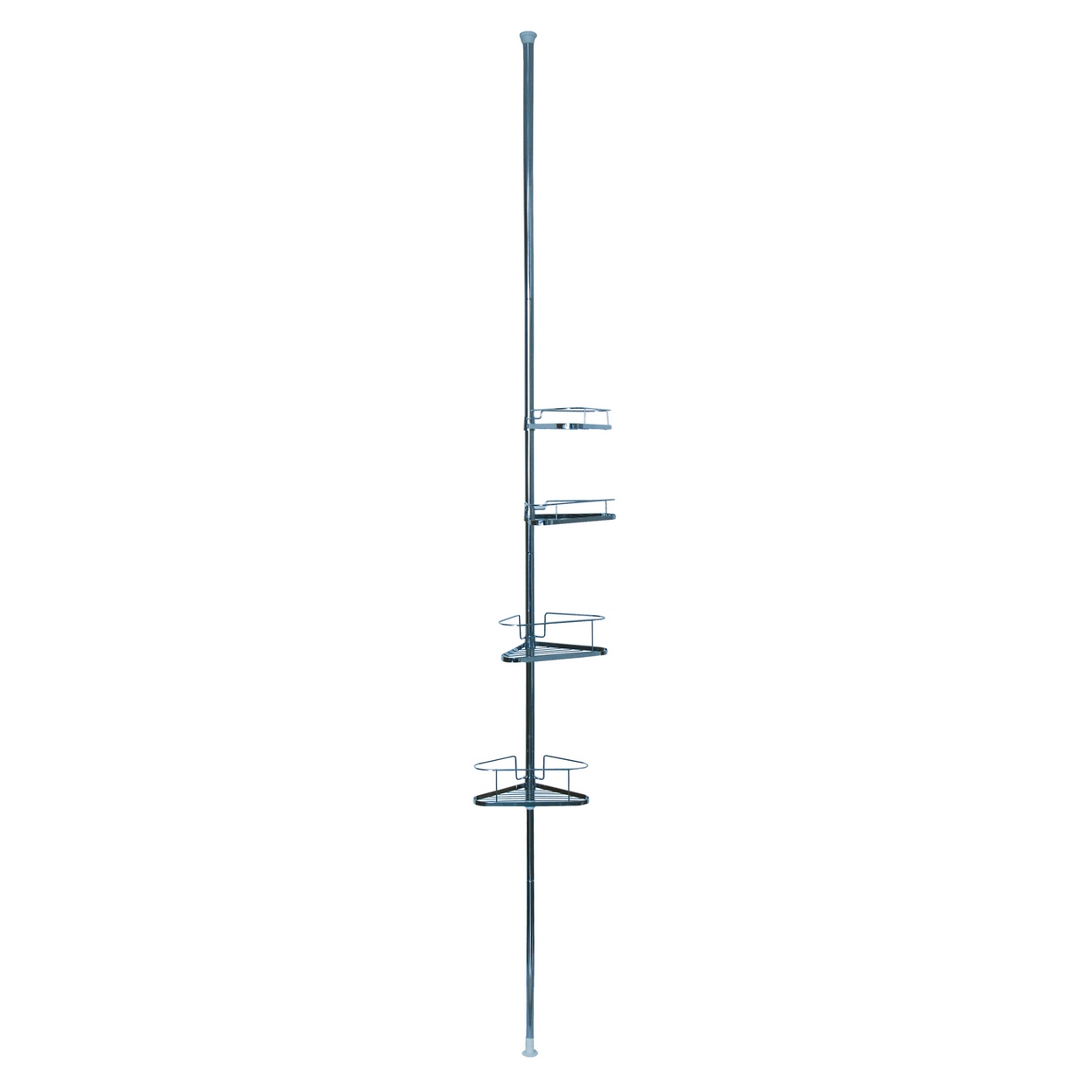 Estupenda estantería de rincón para la ducha, con cuatro baldas, que se sujeta por presión al suelo y al techo, sin necesidad de agujerear los azulejos.